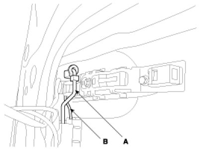 3. Disconnect the lock rod (A) and outside handle rod (B).