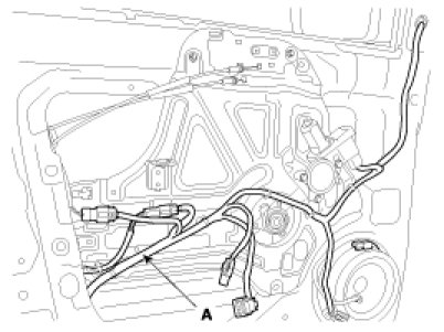 4. Loosen the door module mounting bolts, then remove the door module (A).