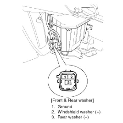 1. With the washer motor connected to the reservoir tank, fill the reservoir tank with water.
