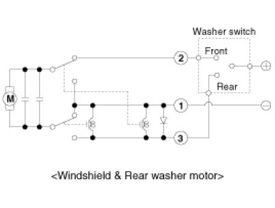 3. Connect positive (+) and negative (-) battery cables to terminals 3 and 1 respectively to see that the washer motor runs and water is pumped.