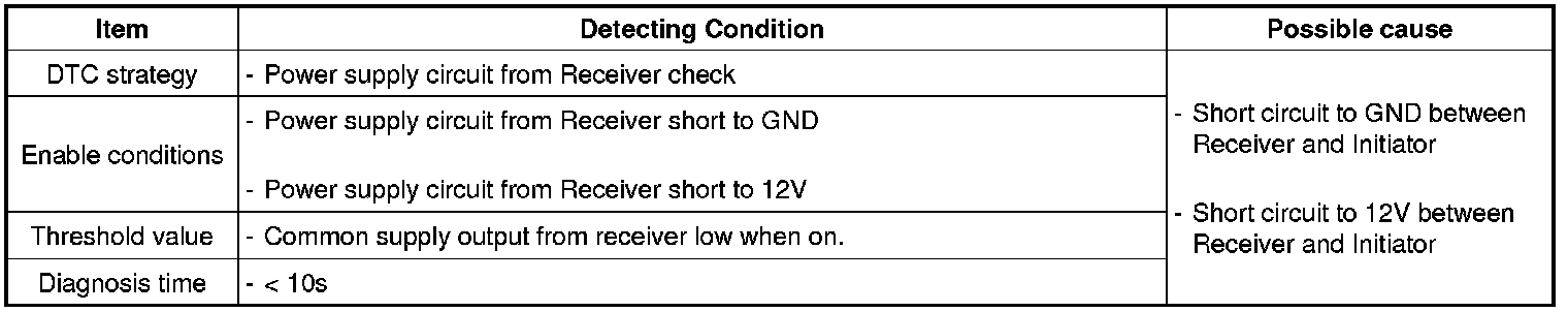 TPM Receiver is integrated with the TPM module installed at the bottom of the steering column. The operating battery of TPM module is supplied from the vehicle battery. Data such as Tire pressure, Tire Temperature, TPM sensor battery status and TPM sensor valve ID from TPM sensors are transmitted to TPM receiver in the form of RF signal. TPM module accomplishes Tire Monitoring and Warning Logic with received data.