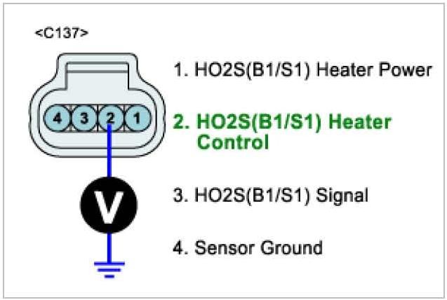 3. Measure voltage between terminal 2 of HO2S (B1/S1) harness connector and chassis ground.