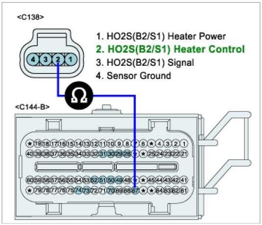 1. Check HO2S (B2/S1) Heater resistance
