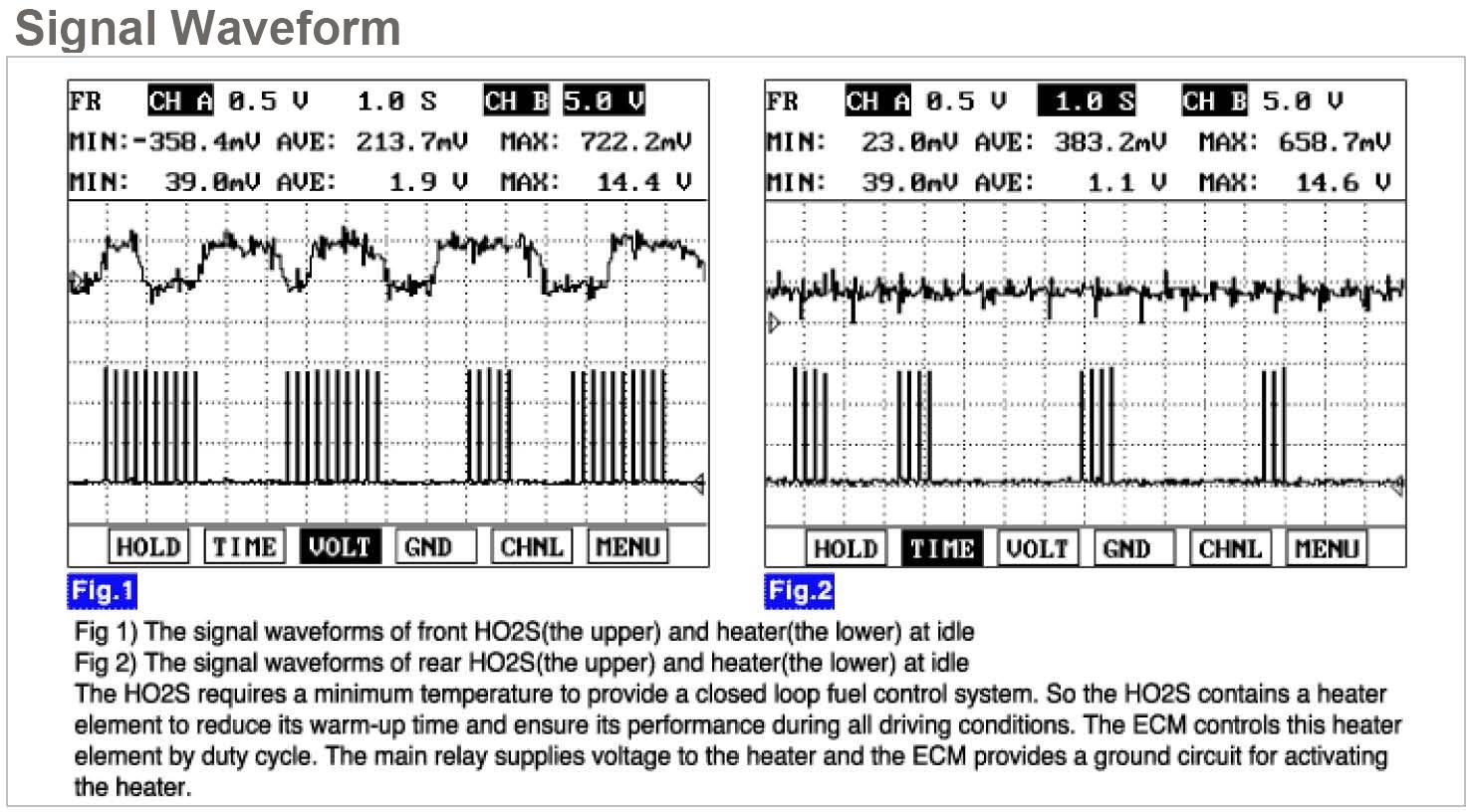 The normal operating temperature of the HO2S (Heated Oxygen Sensor) ranges from 350 to 850 °C (662 to 1562 °F). The HO2S heater greatly decreases the amount of time required for fuel control to become active. The ECM provides a pulse width modulated control circuit to adjust current through the heater.