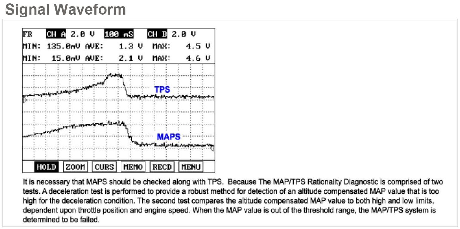 2. Connect probe to MAPS and TPS to check signal waveform by using oscilloscope function.