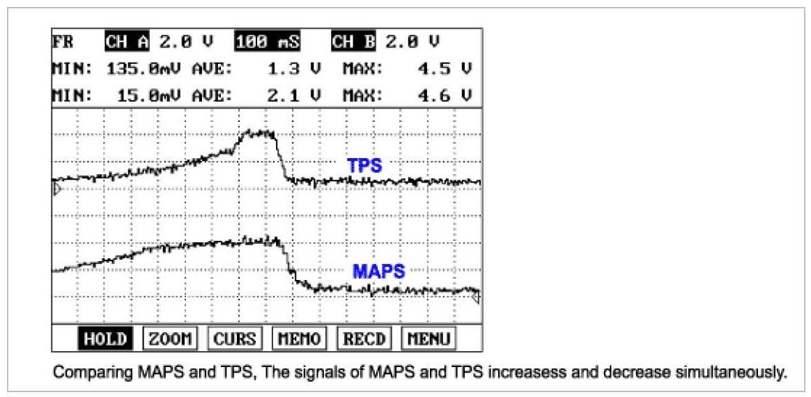 MAPS transfers analog output signal which is proportional to the change of intake manifold pressure, then, with this signal and RPM, ECM calculates the amount of intake air flow.