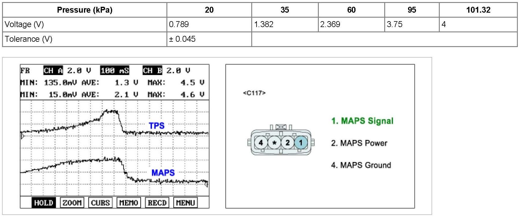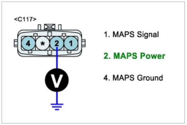 4. Simulate voltage at terminal 1 of MAPS harness connector.