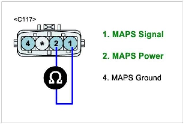 3. Measure resistance between terminal 1 and 2 of MAPS harness connector.