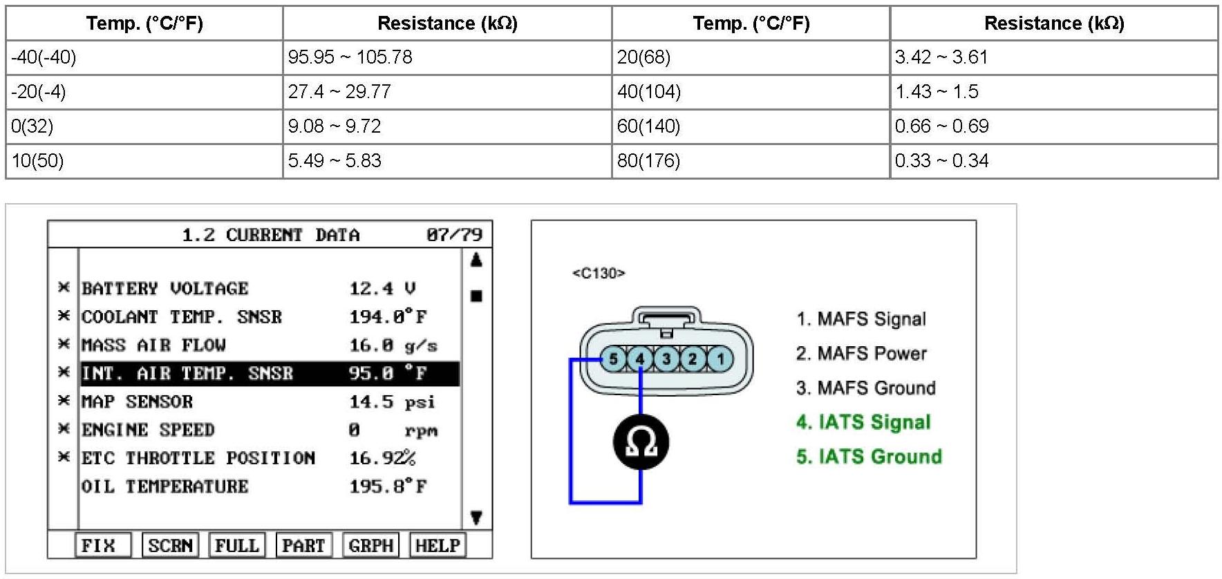 2. Measure resistance between terminal 4 and 5 of IATS connector after checking out the temperature of IATS with scantool