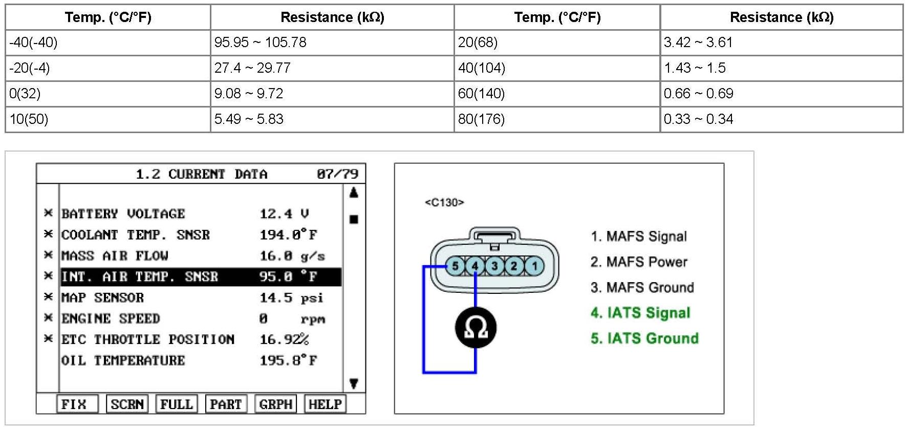 2. Measure resistance between terminal 4 and 5 of IATS connector after checking out the temperature of IATS with scantool.(Component Side)