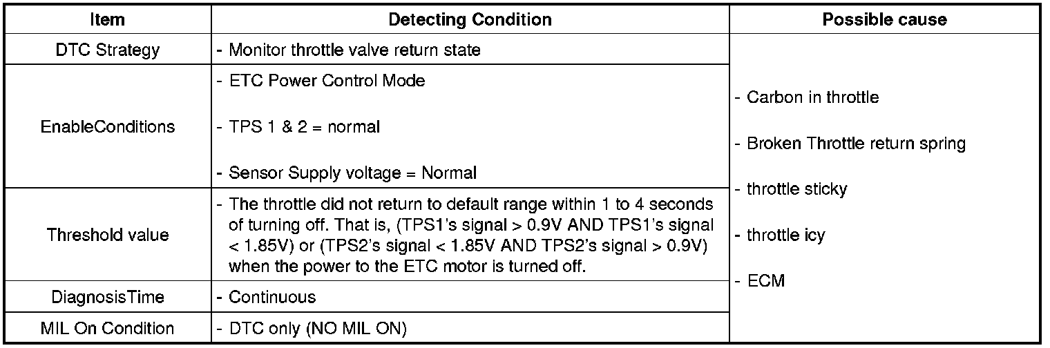 Checking throttle valve return state, under detecting condition, if an output signal is within the threshold value for more than designated time, ECM sets P1523.