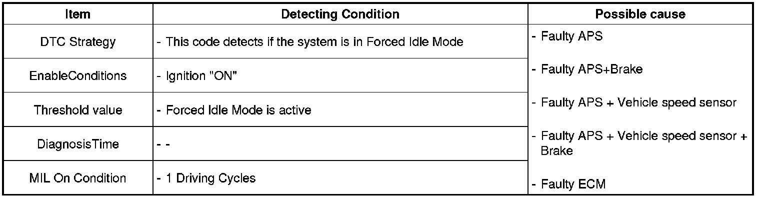 ECM recognizes vehicle state as forced idle under detecting condition, and sets P2104. MIL(Malfunction Indication Lamp) turns on.