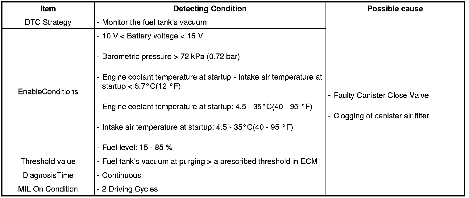 > Repeat "Evap.leakage test" with scan tool after cool the vehicle down sufficiently. If the same DTC isn't displayed after the test, it was intermittent fault. Go to "Verification of vehicle Repair" procedure.