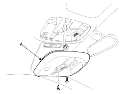 3. Disconnect the sunroof switch connector and trip computer connector after loosening the screws (2EA) and then remove the overhead console lamp (A) from the head lining.