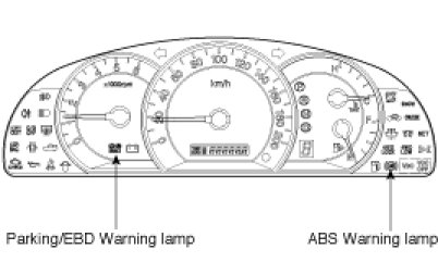The active EBD warning lamp module indicates the selftest and failure status of the EBD.However, in case the Parking Brake Switch is turned on, the EBD warning lamp is always turned on regardless of EBD functions.The EBD warning lamp shall be on: