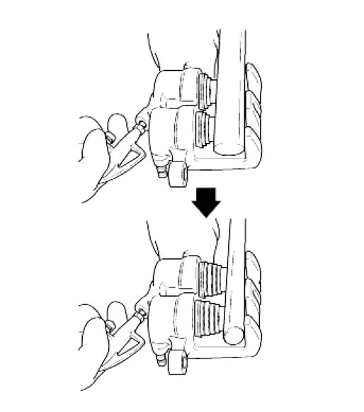 1. Remove the piston boot/piston.Blow compressed air into the brake hose seating hole so as to remove the piston and the piston boot.