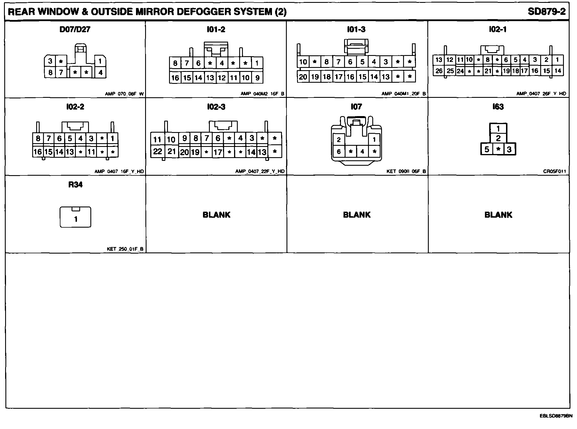 Rear Window & Outside Mirror Defogger System Connector Pin Outs: