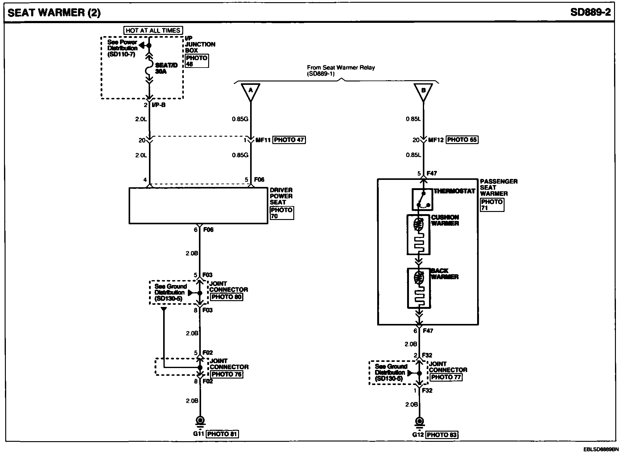 Locations: Location photographs (references to PHOTOS) referred to within these diagrams can be found via the photo number at the vehicle level under Locations by Photo Number. Component Locations
