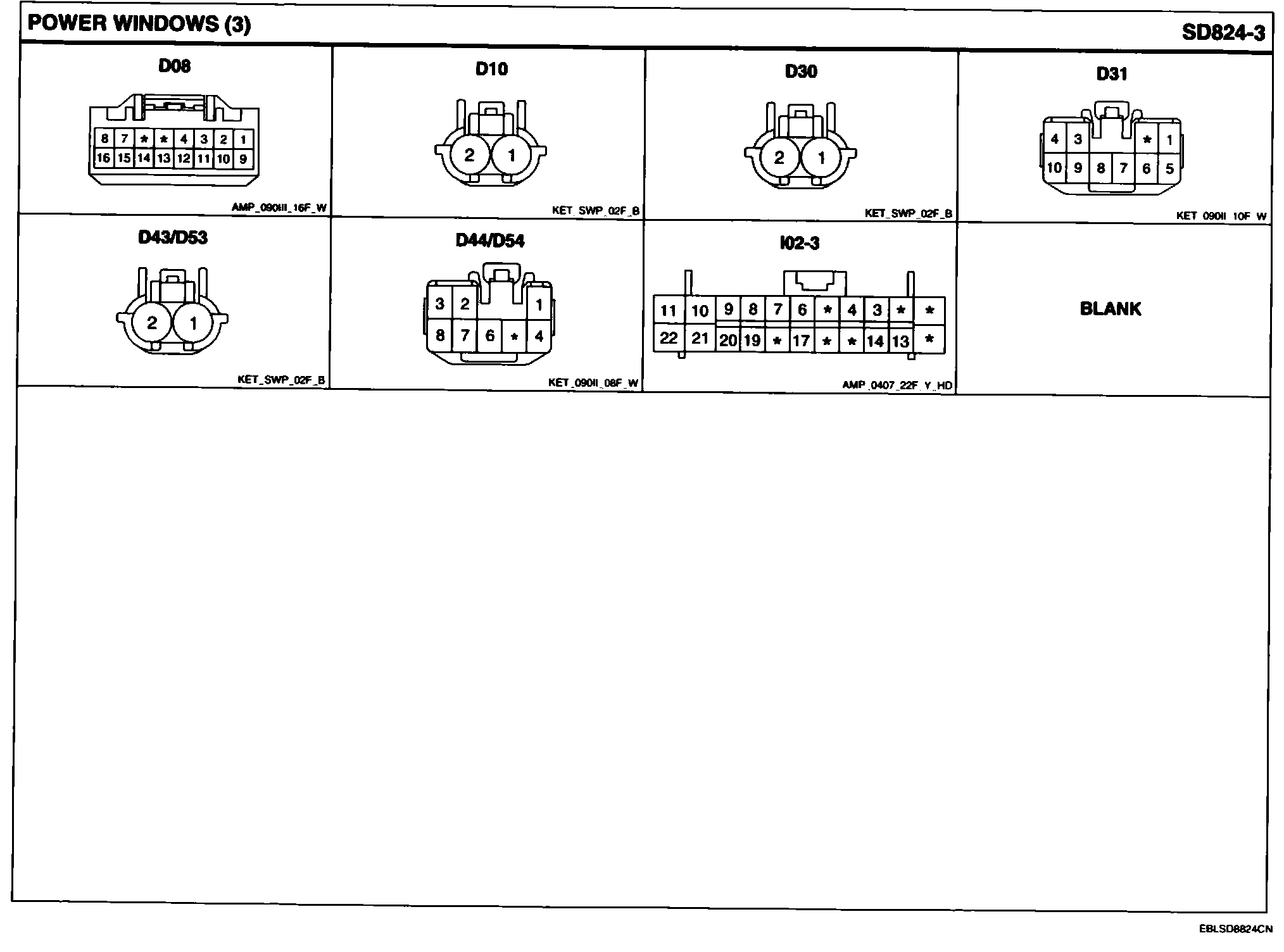 Power Windows Connector Pin Outs:
