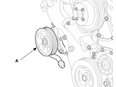 2. Remove the power steering pump(A).