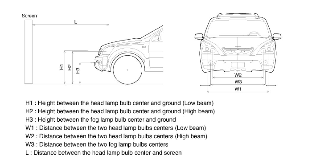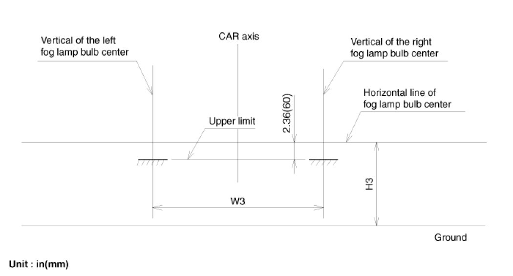 The front fog lamps should be aimed as the same manner of the head lamps aiming.