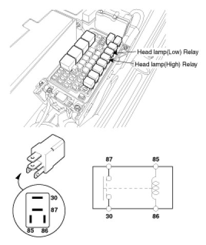 1. Check for continuity between the terminals of head lamp relay.