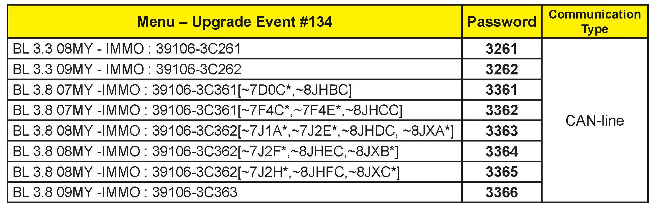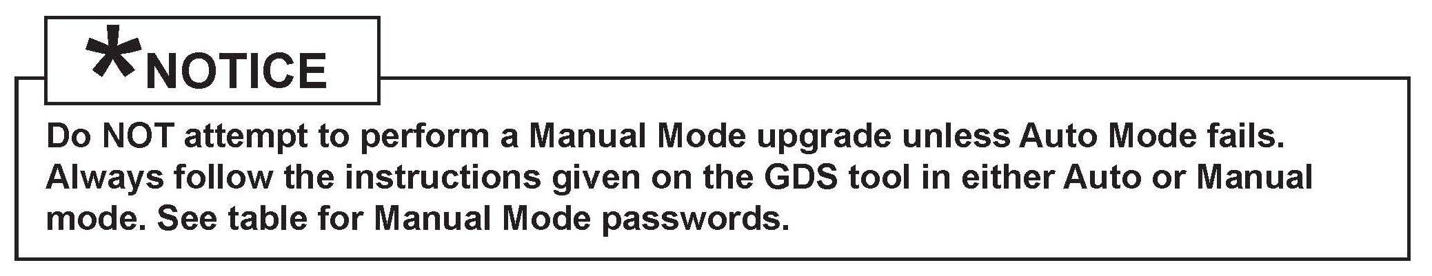 MANUAL MODE PCM UPGRADE PASSWORDS: