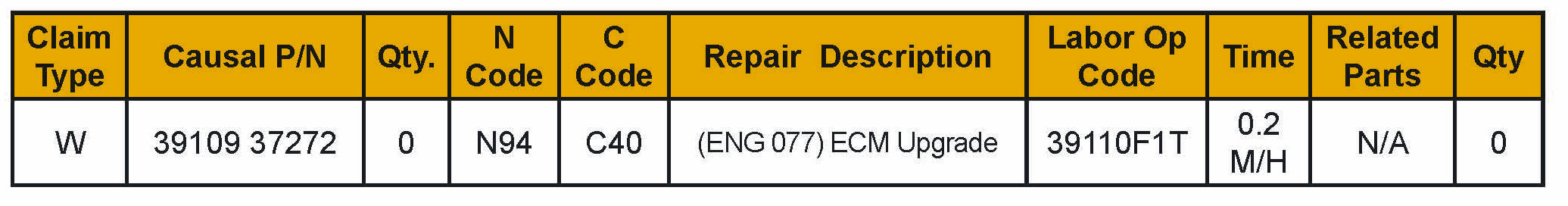 STANDARD TSB WARRANTY CLAIM INFORMATION: