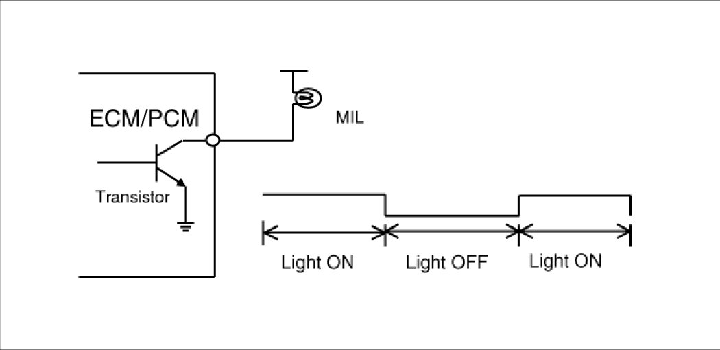 The Malfunction Indicator Lamp (MIL) is connected between ECM or PCM-terminal Malfunction Indicator Lamp and battery supply (open collector amplifier).