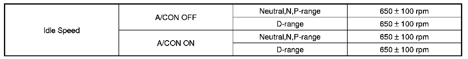 Idle Speed: Specifications