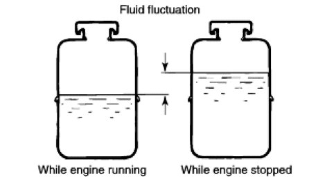 4. Check the difference of the fluid level when the engine is stopped, and while it is running. If the fluid level changes considerably, air bleeding should be done.