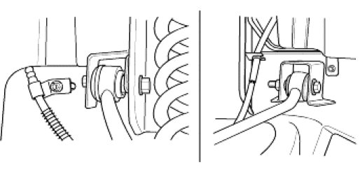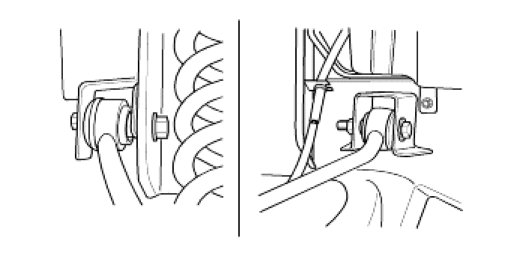 4. Tighten the upper arm bolts and nuts and then install brake hose brackets.