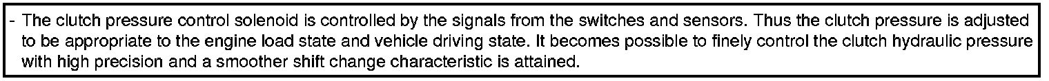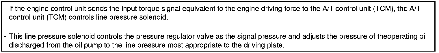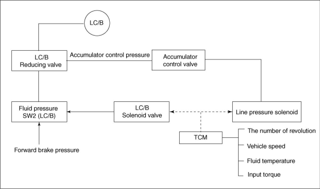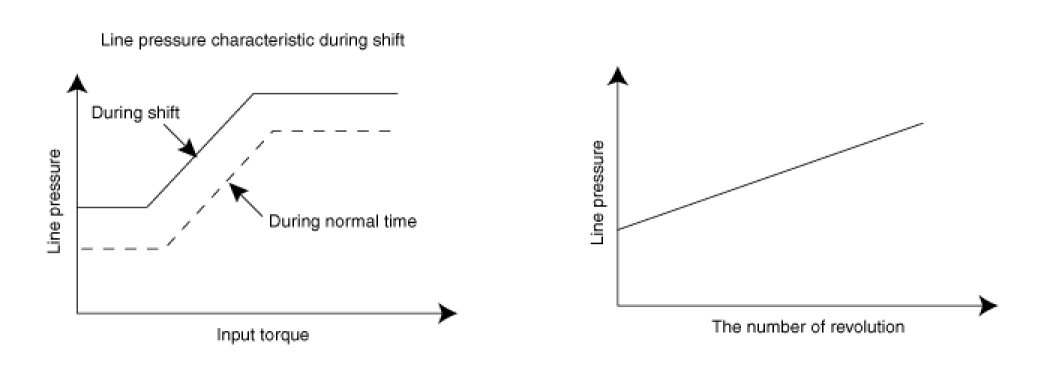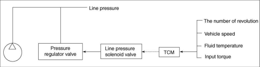 - In order to obtain the most appropriate line pressure characteristic to meet the current driving state, the TCM controls the line pressure solenoid current valve and thus controls the line pressure.