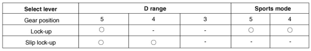LOCK-UP OPERATING CONDITION TABLE