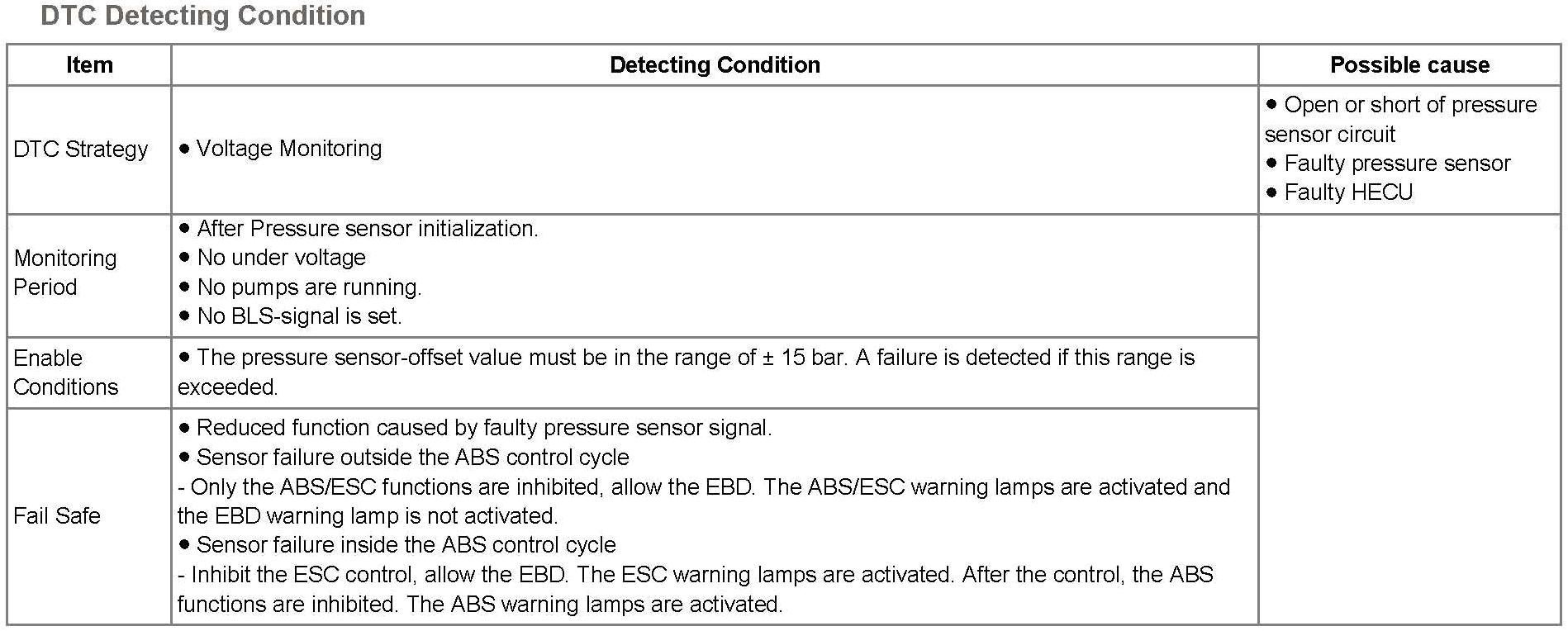 A failure is detected if offset value exceeded ±15 bar.