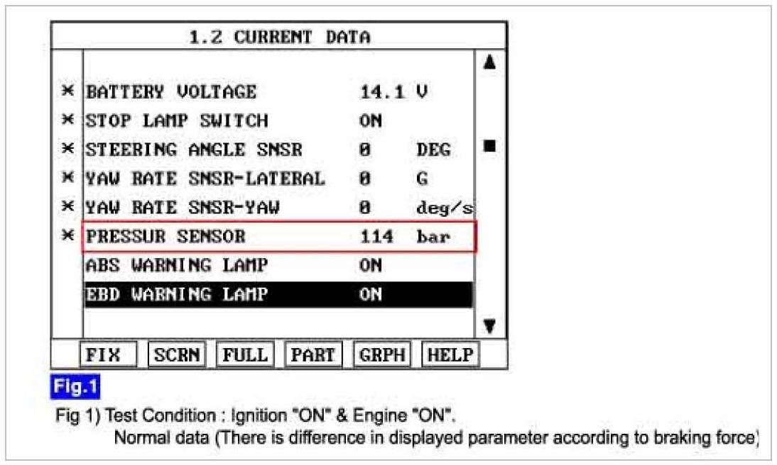 Specification: Approx. 60 bar - 150 bar (There is difference in displayed parameter according to braking force)