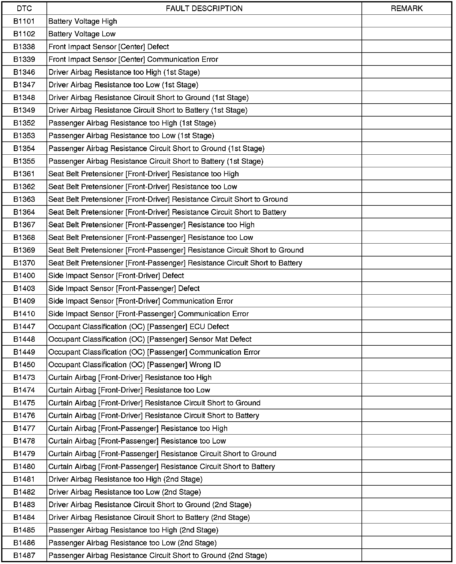DIAGNOSTIC TROUBLE CODES (DTC)