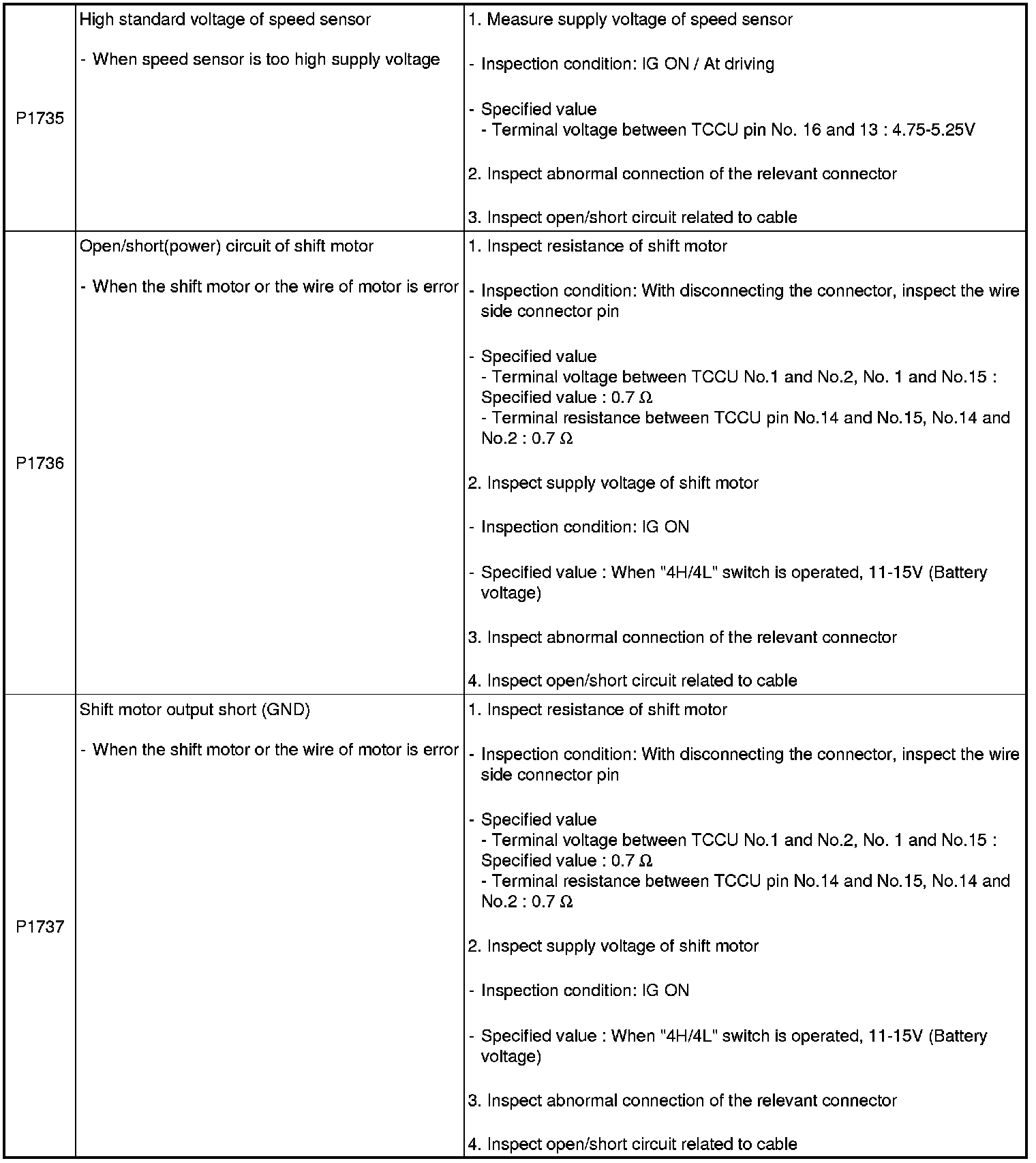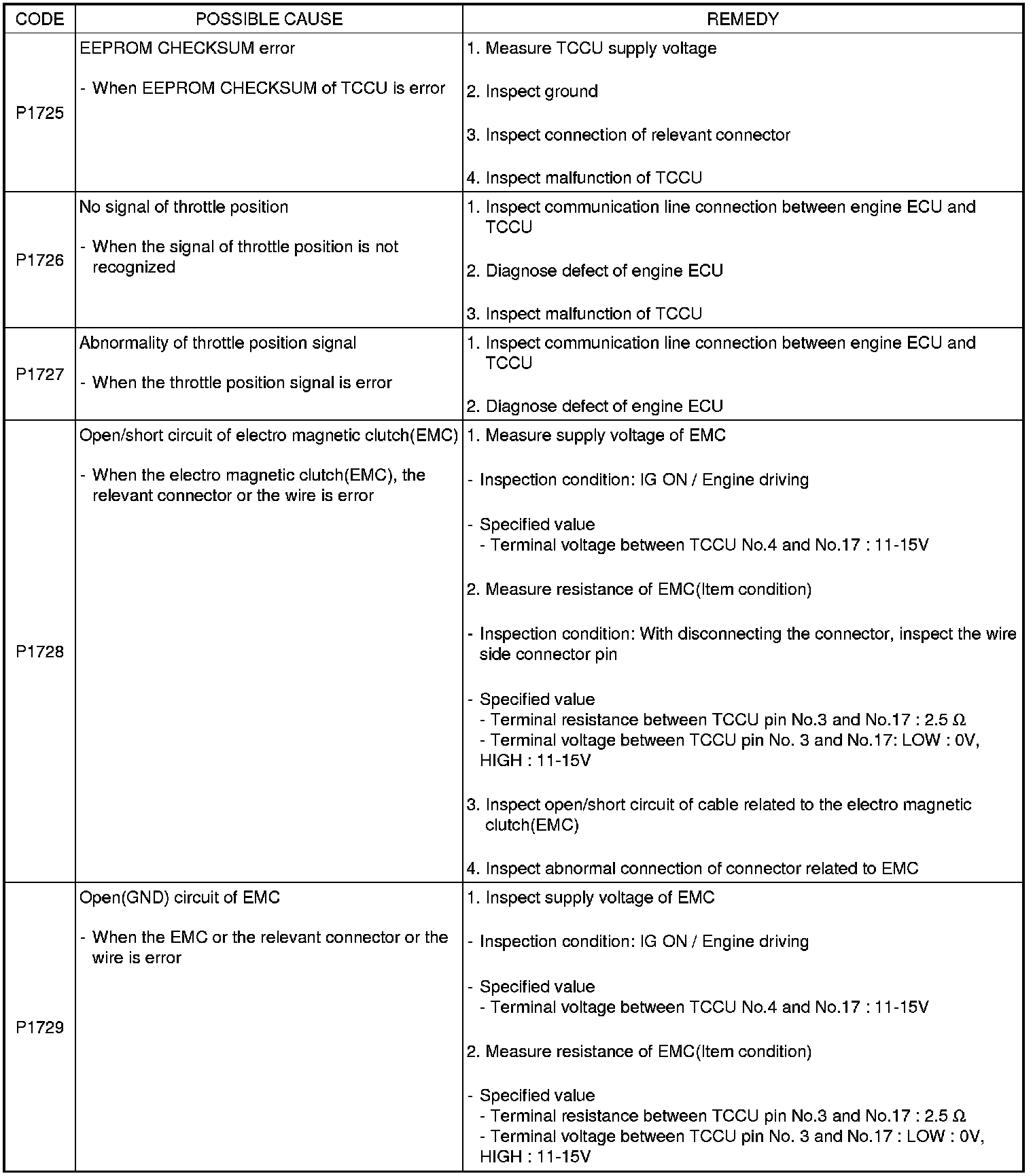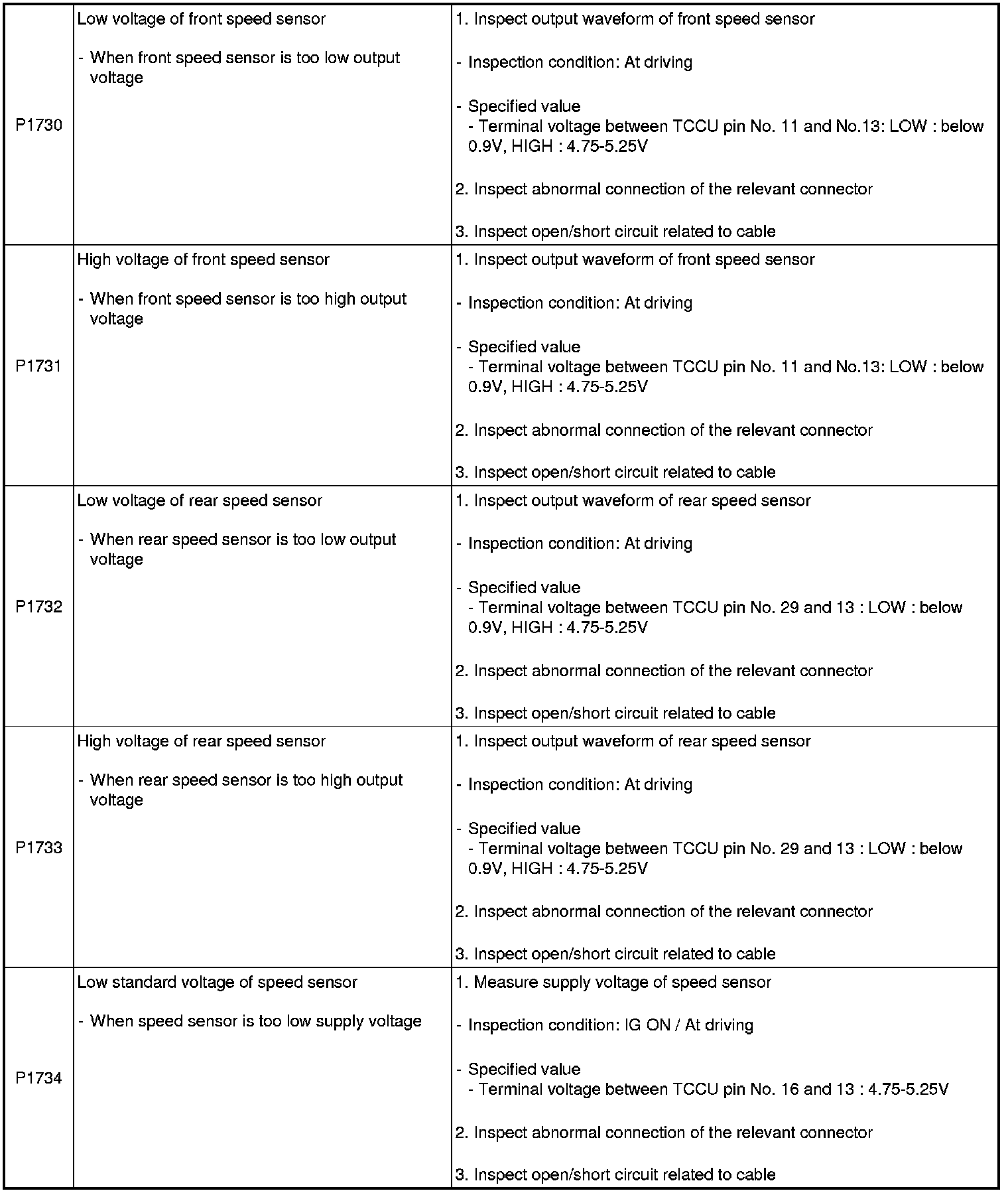 INSPECTION PROCEDURES FOR DIAGNOSTIC TROUBLE CODES