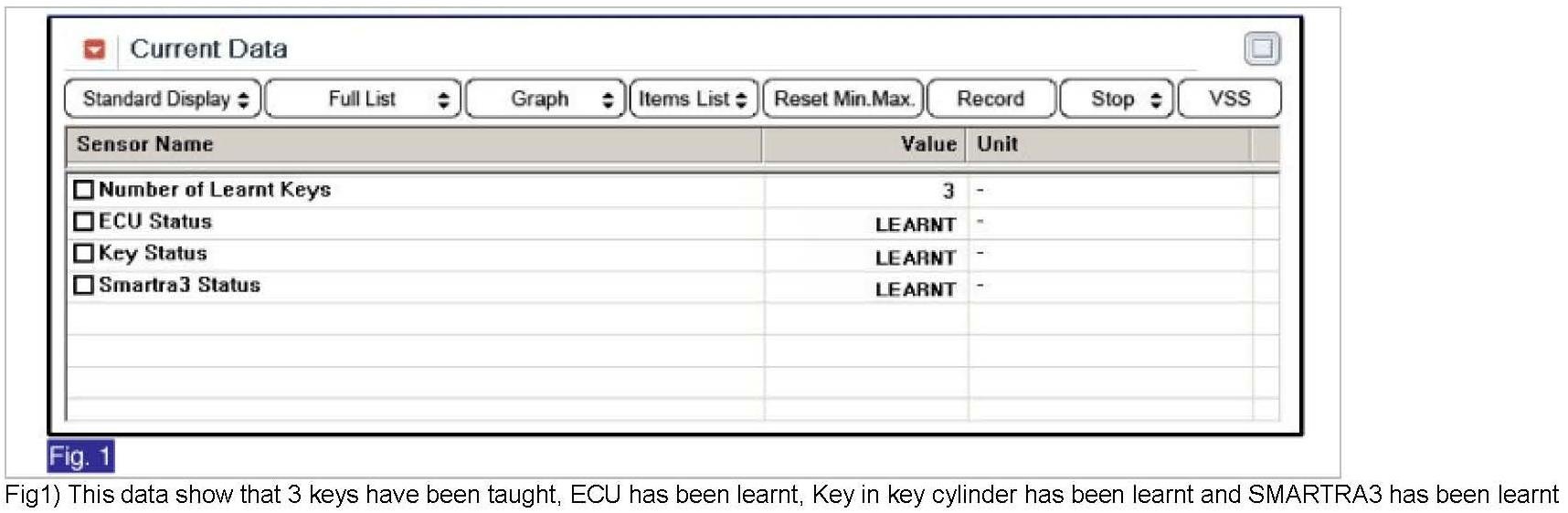 2. Monitor the "ECU, KEY and Smartra STATUS" Parameter on the Scantool.