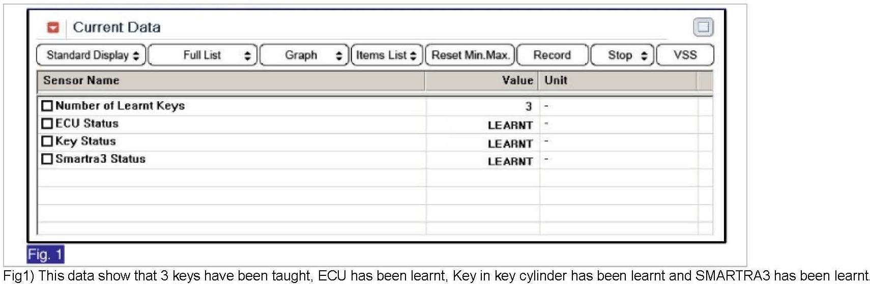2. Monitor the "ECM, Key and Smartra Status" Parameter on the Scantool.