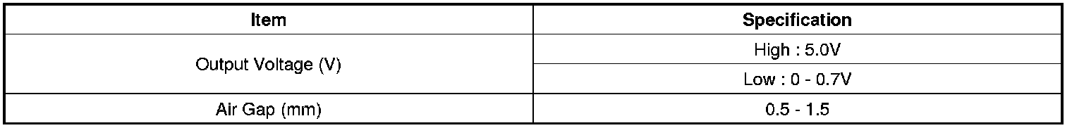 Camshaft Position Sensor (CMPS) is a hall sensor and detects the camshaft position by using a hall element. It is related with Crankshaft Position Sensor (CKPS) and detects the piston position of each cylinder which the CKPS can't detect. The two CMPS are installed on engine head cover of bank 1 and 2 and uses a target wheel installed on the camshaft. This sensor has a hall-effect IC which output voltage changes when magnetic field is made on the IC with current flow. So the sequential injection of the 6 cylinders is impossible without CMPS signal.