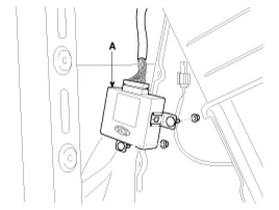 Loosen the mounting nuts (2EA) and remove the back warning control unit (A) from the quarter panel.