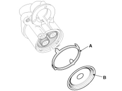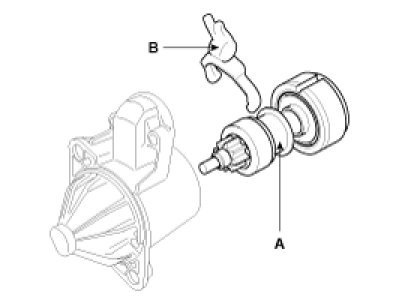 Using a suitable pulling tool (A), pull the overrunning clutch stop ring (B) over the stopper (C).