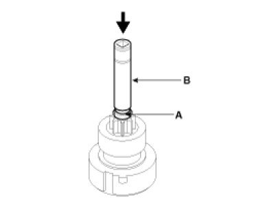 9. Press the stop ring (A) using a socket (B).