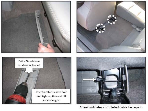 Some 2007-2009 Sorento (BL) Models may experience instances of the 2nd row seat lower leg plastic trim piece that comes loose. In and effort to reduce repeated customer visits for this concern as well as unnecessary warranty replacement of this trim piece, Kia has provided the following repair procedure: