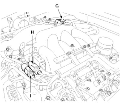 (6) Disconnect the variable induction system(VIS) solenoid valve connector(G).