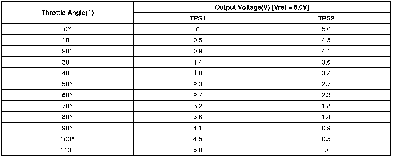 2. Start engine and check output voltages of TPS 1 and 2 at C.T and W.O.T.