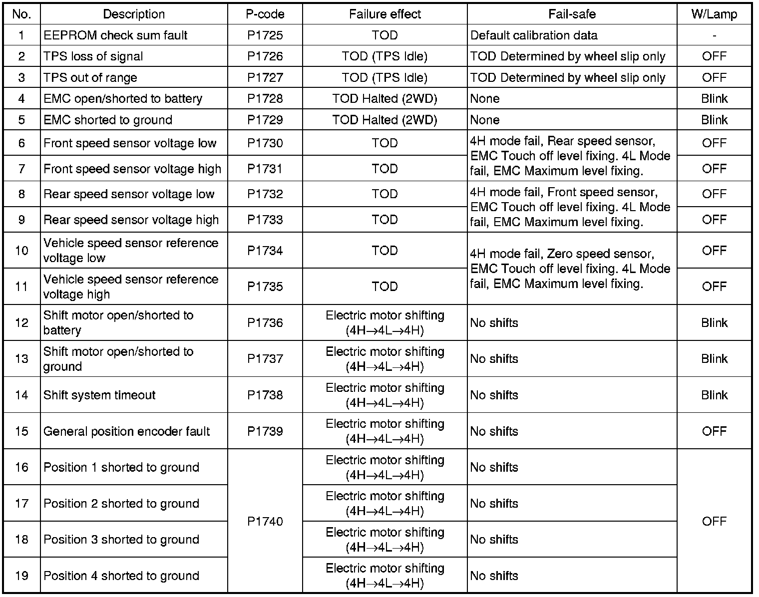 DTC LIST AND FAIL SAFE