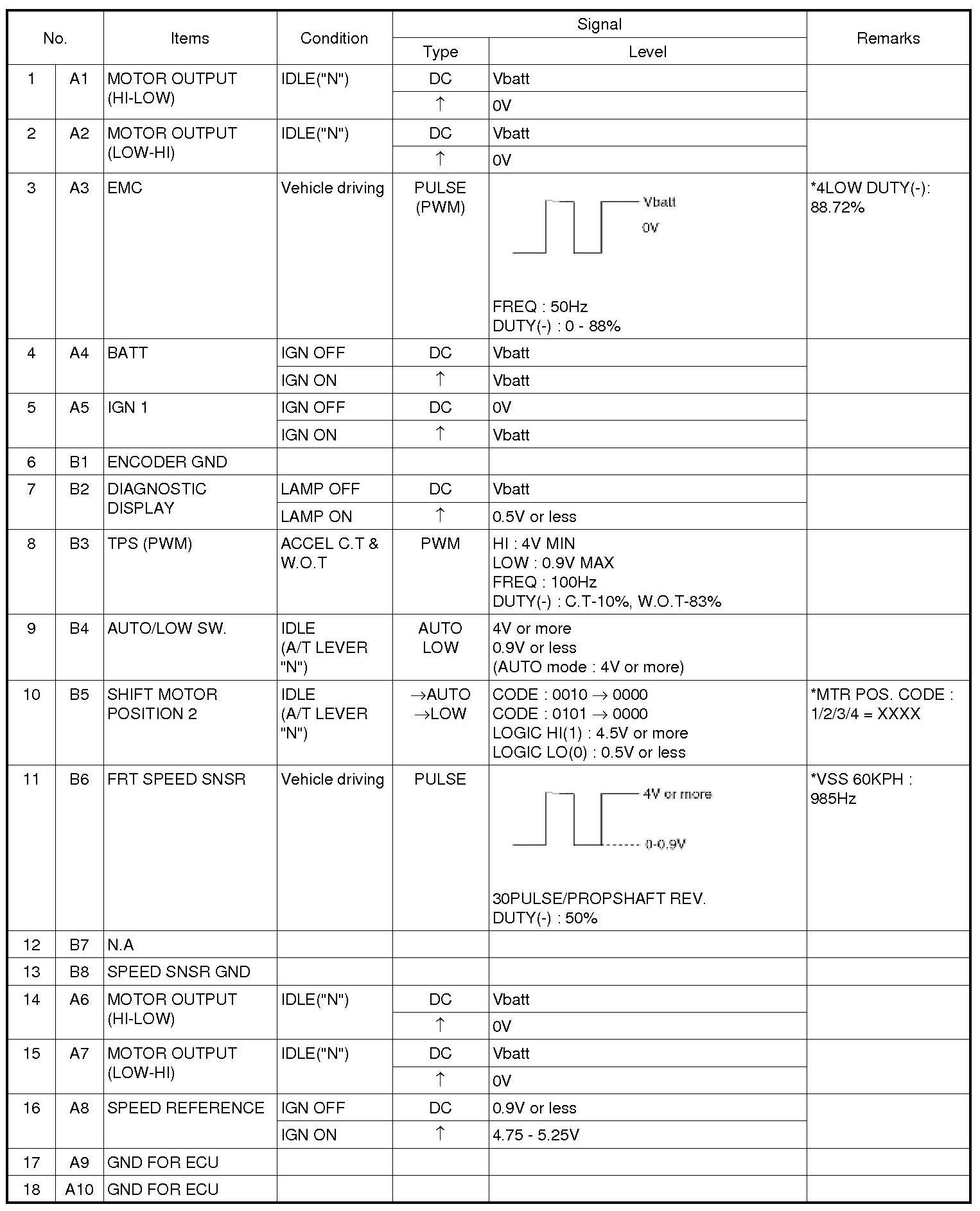6. EX) TCCM Fault (DTC : 001)