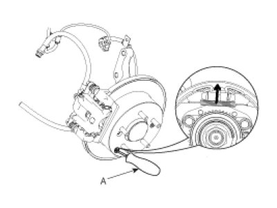 4. Turn the adjusting wheel in arrow direction as shown until the disc won't be rotated by tangential force of 29.4N(3kgf, 6.6Ib) using the (-)screw driver (A). Then] turn back the adjusting wheel by 5 notches.